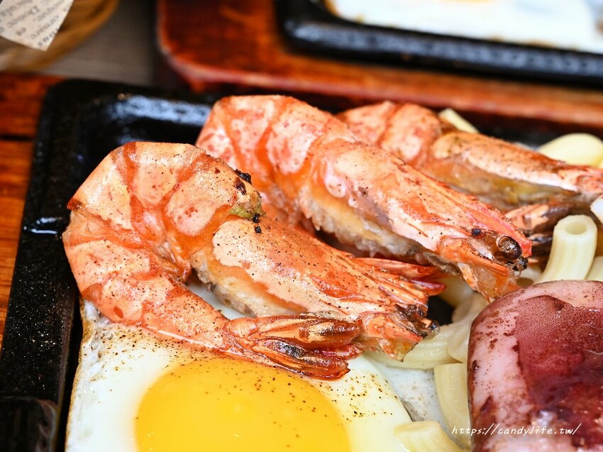 除了干貝,糖糖覺得成功牛排大明店的草蝦也不錯,經過剖背去腸,上桌時用刀叉就能容易將蝦殼脫離,肉質彈牙鮮甜,蝦味十足