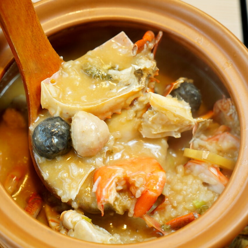 ▼處女蟳也就是還沒交配的母蟹,吃起來肉質厚實、甘甜細嫩,相較於紅蟳來說更加頂級,濃郁軟嫩的蟹膏更是饕客口中的極品,融入粥中變得更加鮮甜美味!