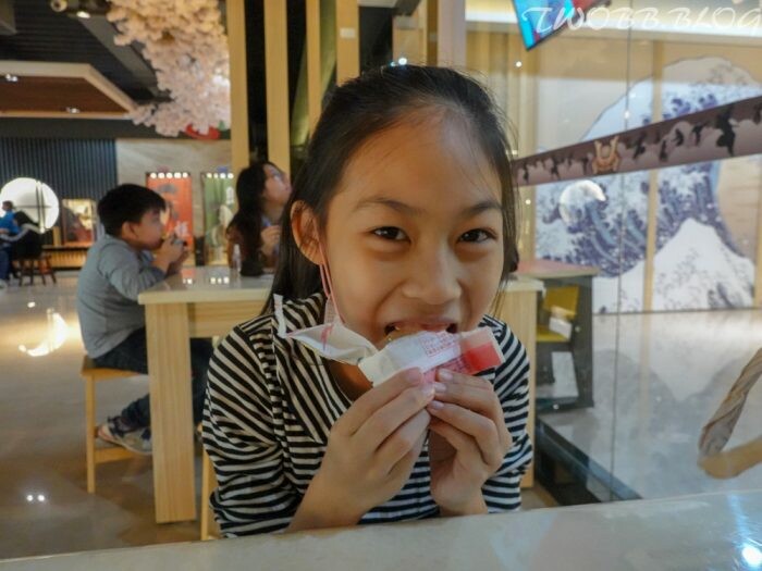 入場由工作人員發送最近很夯的「黑羽燒」,口感軟綿口味濃郁,冰冰吃最好吃,小朋友們都很喜歡。