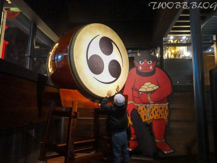 偶爾傳來太鼓表演的聲音,原來是在二樓的這座大太鼓,服務人員說每天是不定時表演,有緣份的話就能親眼看見一場精采打擊秀。