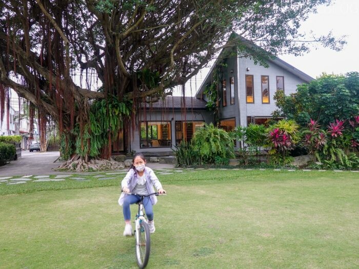 二旁樹木簇擁下的自行車探索之旅,沿途也有田地,藍天白雲相伴,徐徐微風吹來搭配孩子們的笑聲迴盪實在太幸福了,這一刻完全拋下煩惱。
