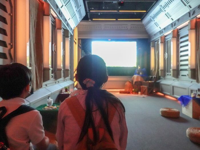 進入機艙前,再深度了解一下中亞文化,i-Ride搭上春季時節推出「春天的魔幻飛行」,首部曲「阿拉丁」深受大小朋友的喜愛,劇情也是相當逗趣,主軸為阿拉丁與茉莉公主籌備婚禮之際,卻不小心惹怒了公主…於是我們就要乘上飛毯幫助阿拉丁完成任務,相當吸引小朋友的劇情。