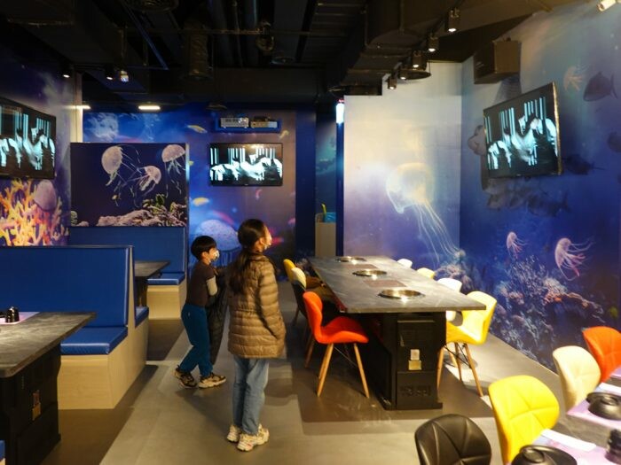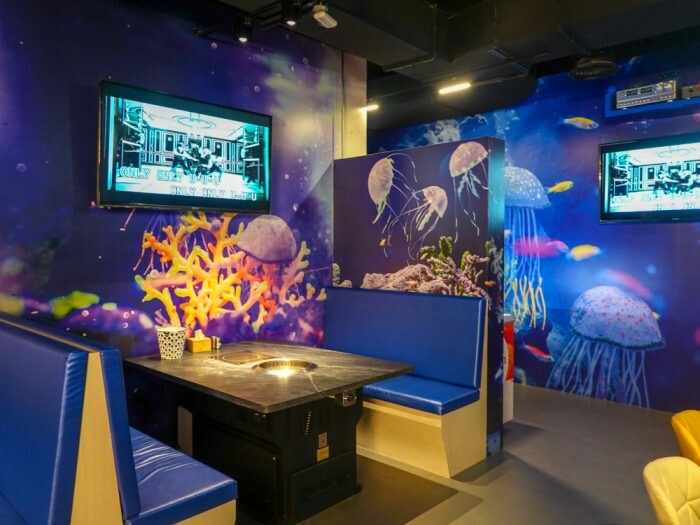 充滿迷幻的深海及科技感,一瞬間真的會忘記自己到底是來KTV包廂還是吃燒肉料理。