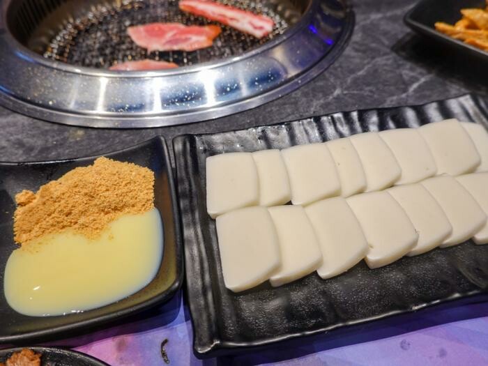 燒肉搭配特調的燒肉醬一起吃,簡單搭配海鹽入口鹹香!
