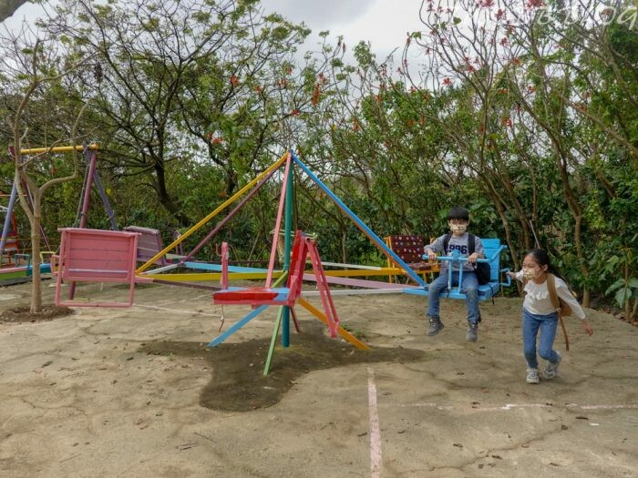 園區所到之處,常會看到童趣盎然的盪鞦韆還有翹翹板等,在群樹環繞及架高設計的鞦韆上別有一番趣味!