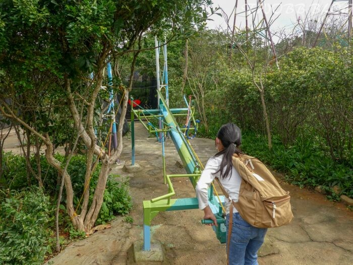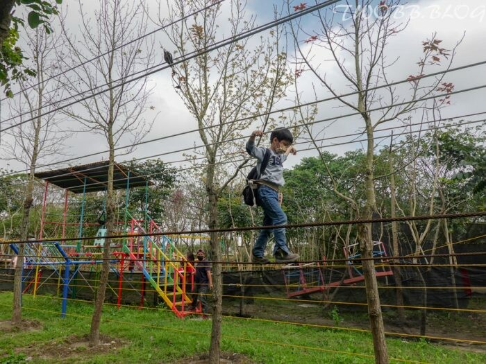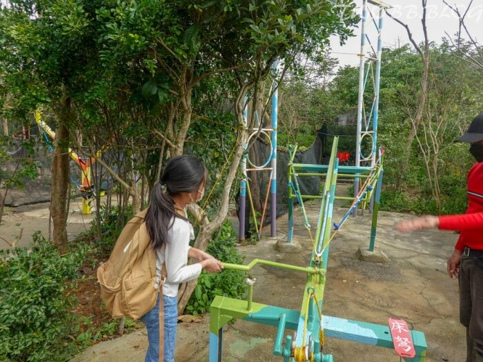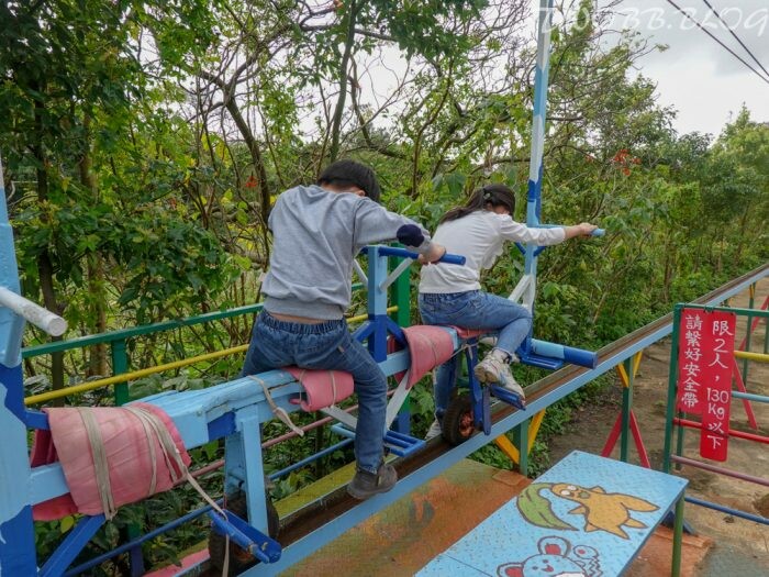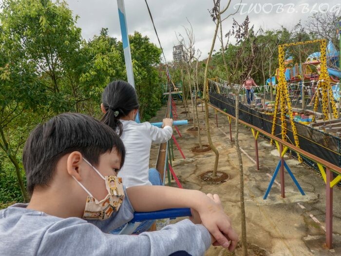 接下來的設施真的要靠一家人齊心協力,「空中腳踏車」實在是踩的媽媽我哀天叫地,全身的肌肉酸痛都在提醒我太少運動了啦。
