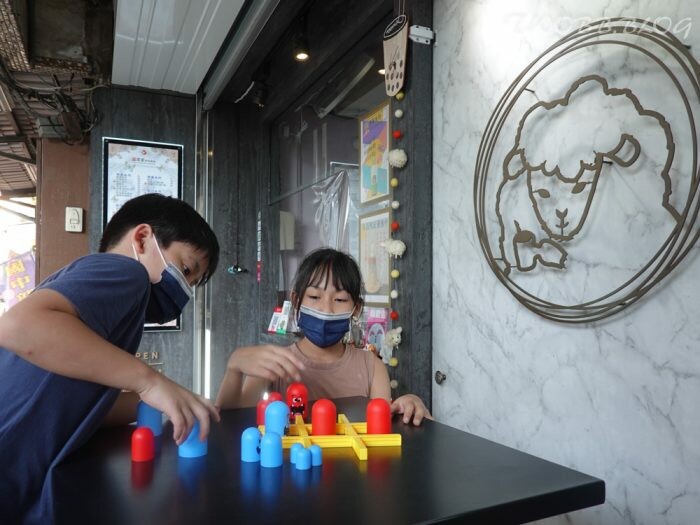 除了可愛搞笑的小小公仔,店鋪旁竟然還有桌遊,本來還怕二隻小的會沒耐心無法等待,看來他們在這裡也能打發一些時間。