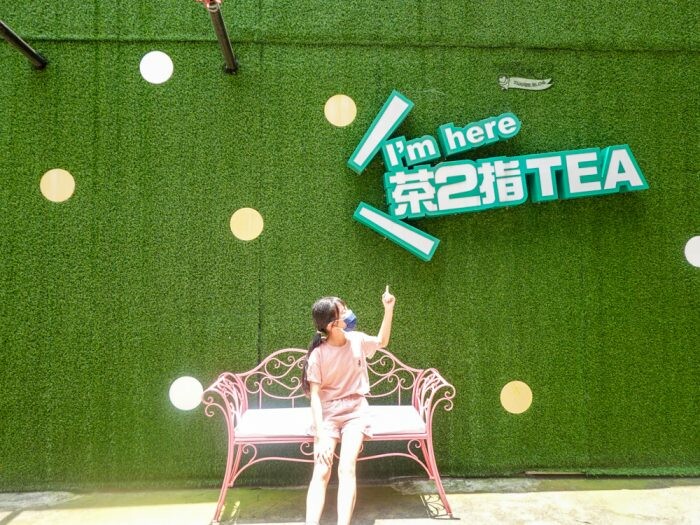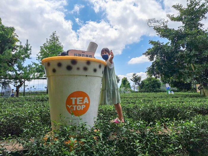 超吸睛巨大珍奶是茶二指故事館的代表性打卡點之一,來到這裡完全不用擔心拍照技術,這片天然美景加持下每一張絕對水噹噹。