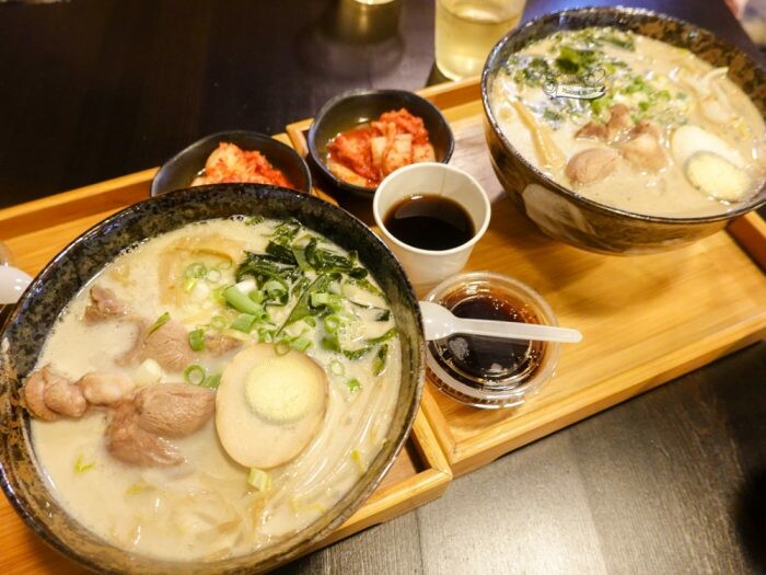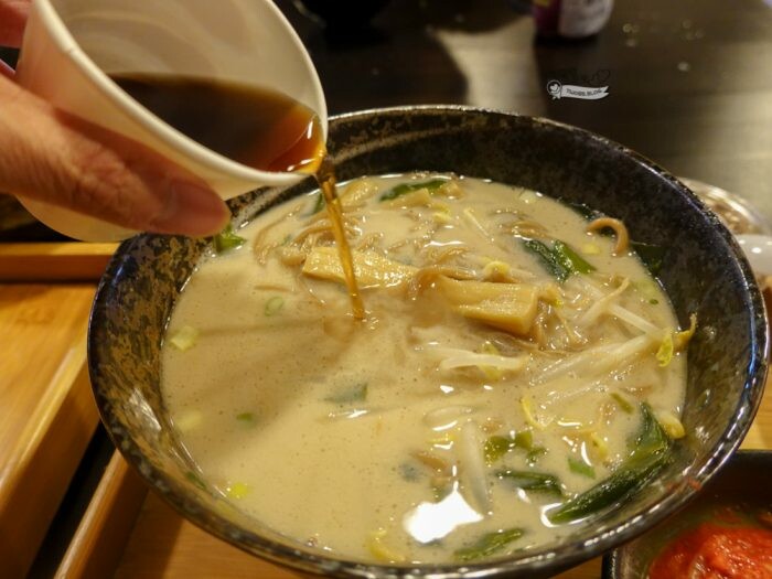 香噴噴的拉麵上桌,兩個小孩就迫不及待想開吃啦。Q彈拉麵與濃醇的豚骨湯頭馬上就擄獲妮姊叡哥的心。胃口大開咻咻咻一口接一口。
