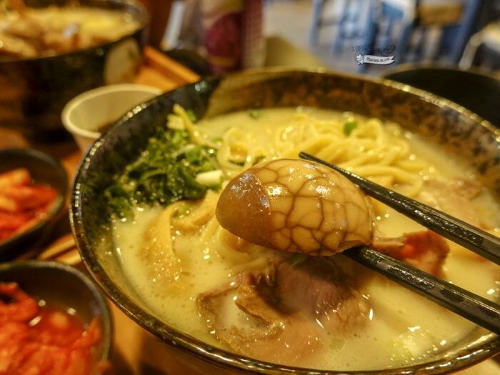 入味的茶葉蛋取代一般糖心蛋,多了茶香及不同風味。
