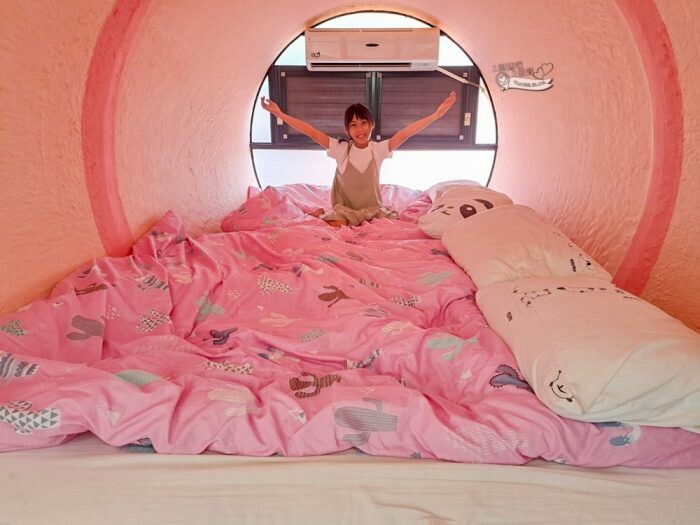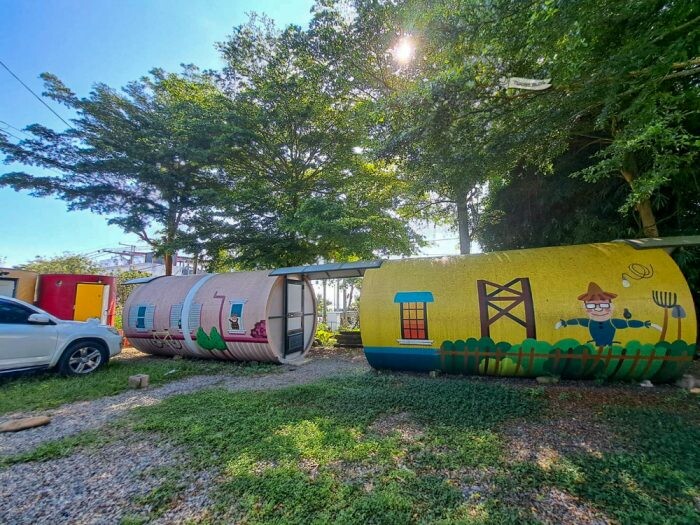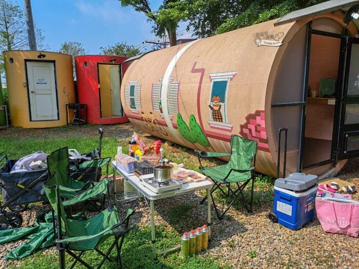 當天入住的是家庭房,相當有特色的水管屋,每一間裏頭都有冷氣,所以夏天來也不怕炎熱,野炊過程太熱我還是會偷懶進去吹個冷氣納涼一下。