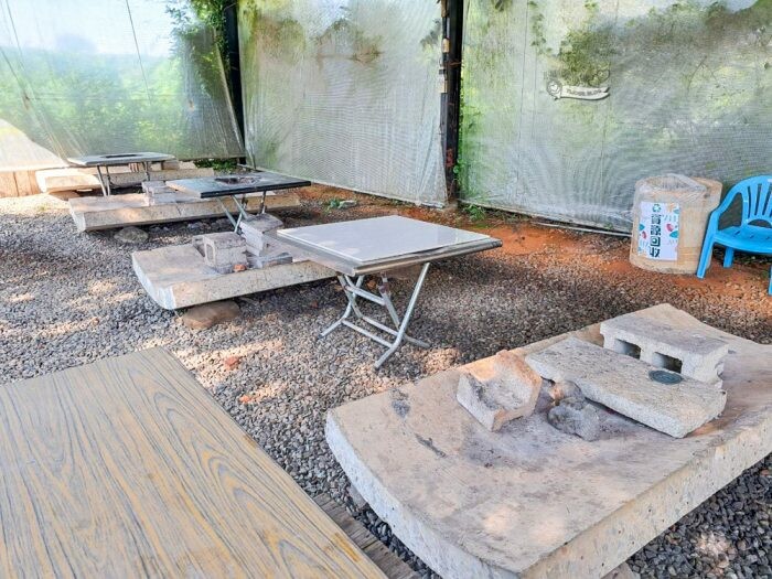廁所整體配置比例上來說相當足夠,幾乎每三間就配置一間廁所。園區內有提供烤肉場地,而且不需要租金,烤網、木炭等食材需要自己攜帶喔。