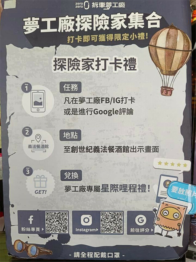 另外只要在臉書/IG打卡,或是Google評論,再到餐廳出示畫面,就能兌換小禮物喔!
