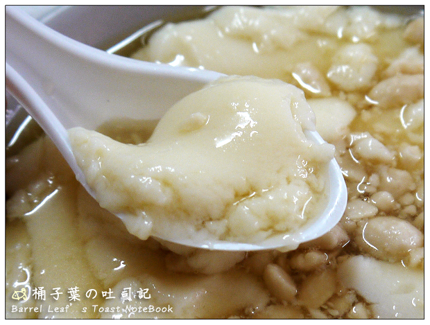 不過一撈到主角豆花時,葉子挖的時候~看到豆花綿化分開來的質地就覺得應該會不錯。