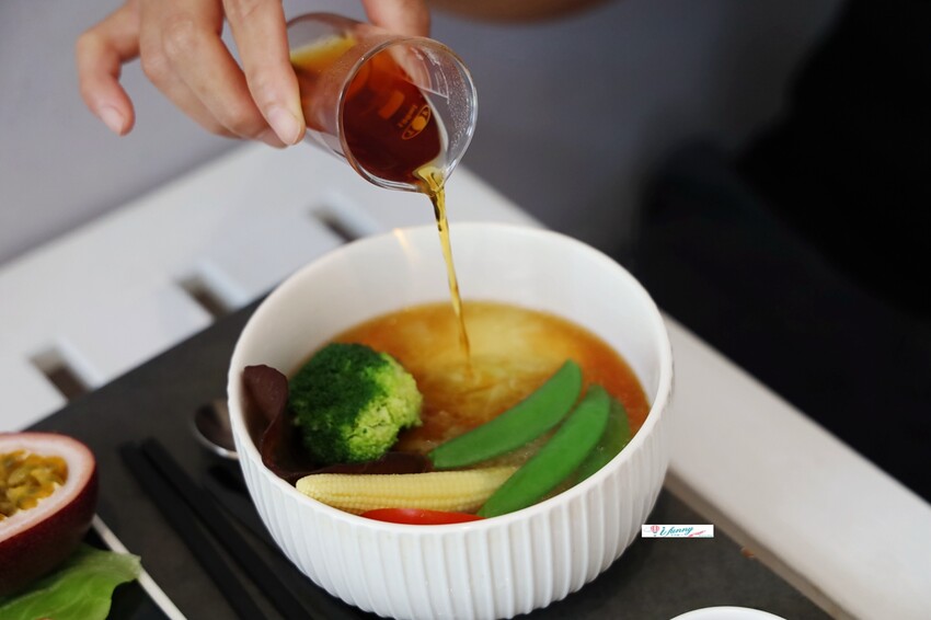 以高麗菜香菇蔬菜湯頭,滿滿的纖維質,喝上一口盡是在地食材的鮮甜。