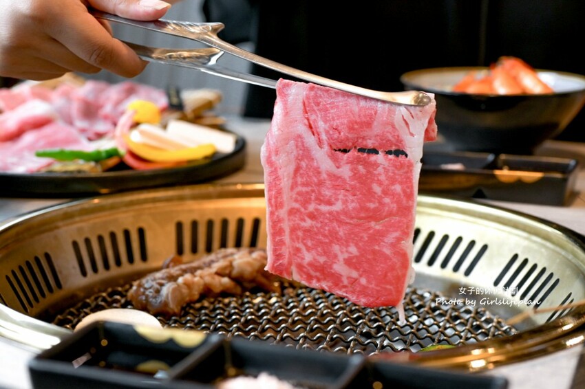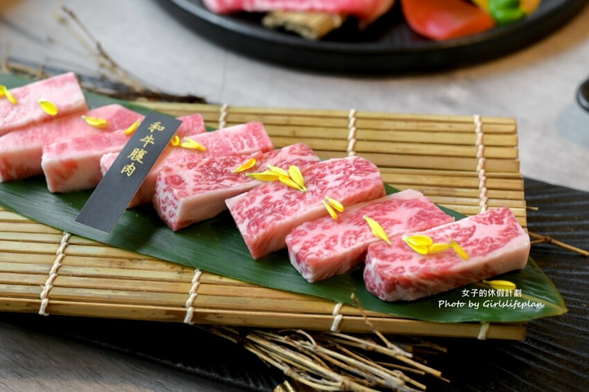 光看就知道日本和牛腹肉油花有夠美麗,油花相當美麗油脂也很豐厚,烤後滿口和牛油脂香氣超肥美,這款比較厚實吃起來很有肉感,吃了只有滿滿的感動阿。