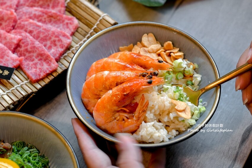 海鮮類只能擇一,選了琥珀蝦頗大隻,有事先開背,剝的時候也十分方便,和蒜香蝦飯一比就知道有多大隻了,吃起來滿滿蝦味,只能說很用心在挑。
