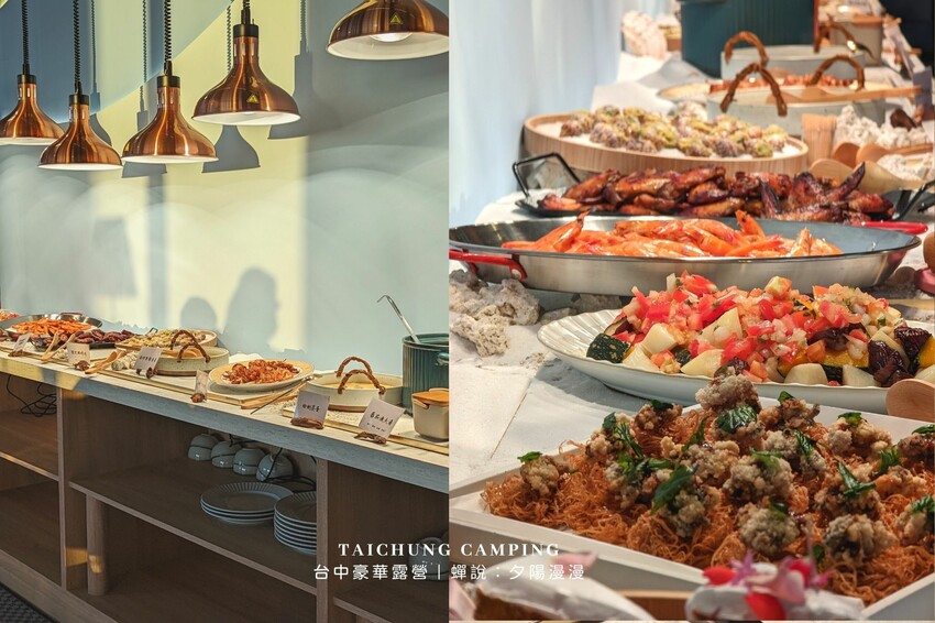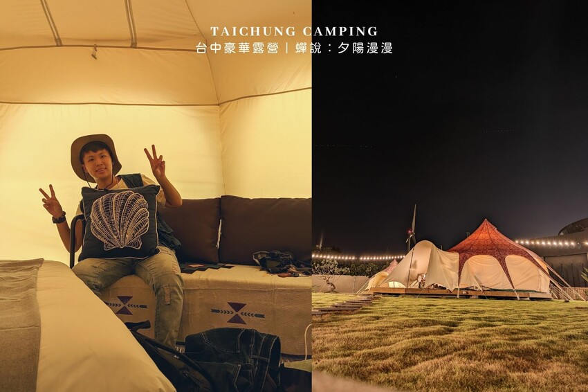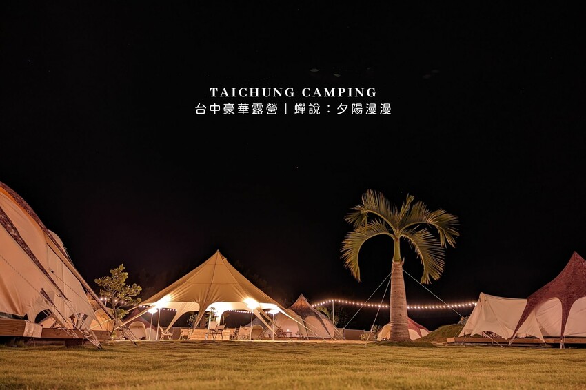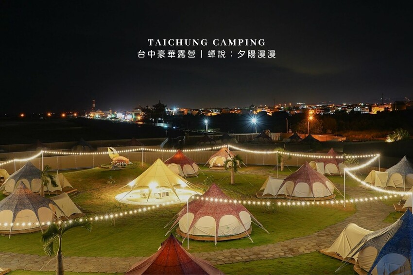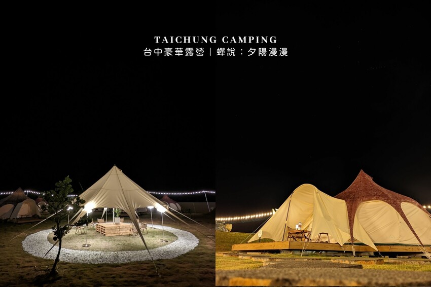 這個開幕於2022暑假尾聲的蟬說:夕陽漫漫,是台灣唯一濕地生態露營,坐擁高美濕地夕陽景觀。一泊二食的入住體驗中,餐點豐盛且融入當地特色;帳篷區白天童趣可愛,晚上又如夜間嘉年華一般,有著繽紛熱鬧之感,伴著自然的白噪音入眠,是台中豪華露營中,很特別且非常值得一住的露營區!很適合三五好友、情侶或是家人同遊,從早到晚,享受大自然給的五星級美景。