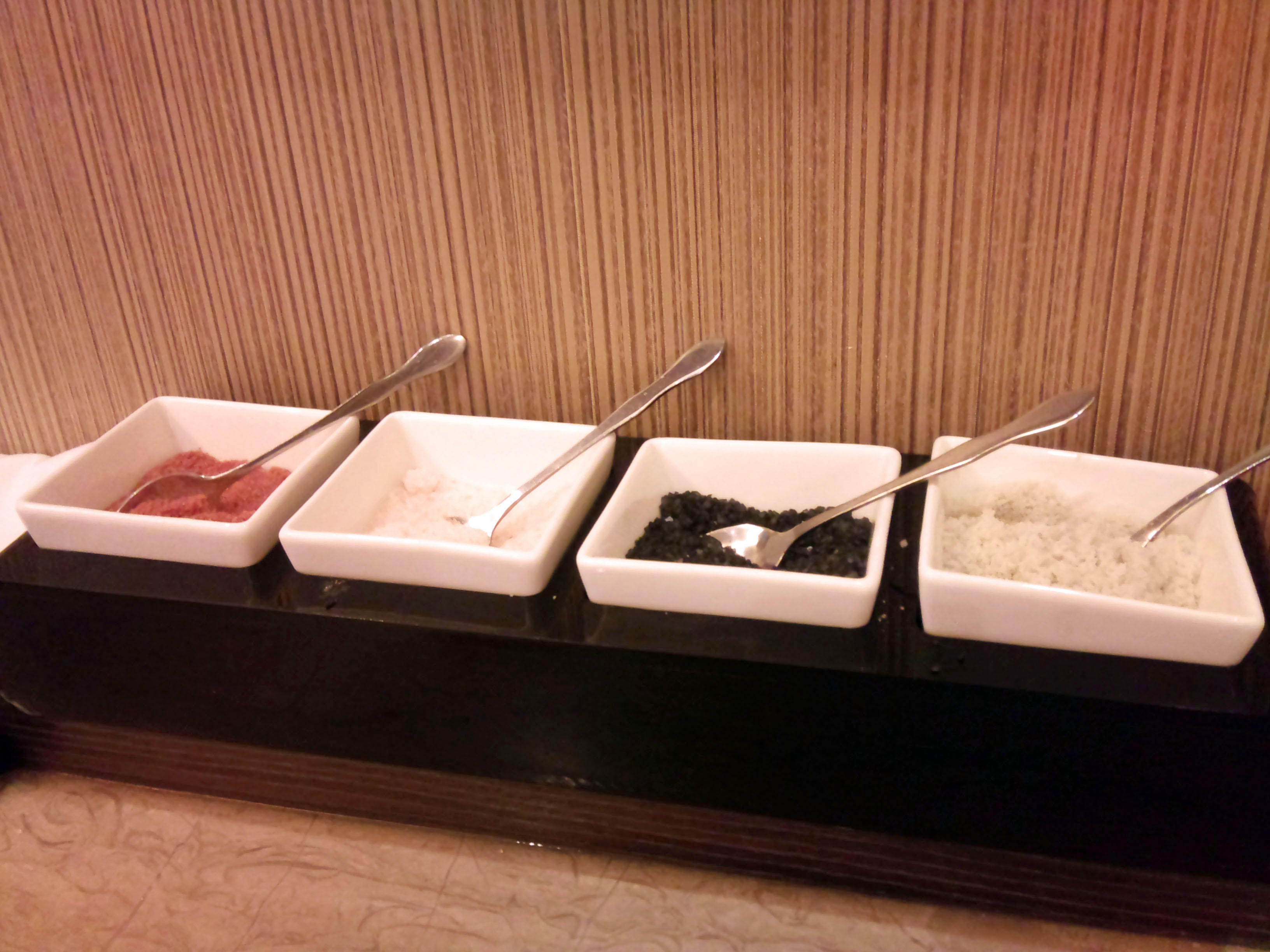 最近,快樂小館極力推廣牛排要吃原味的,所以,現場準備了四種岩鹽給我們~超貼心的^^