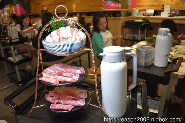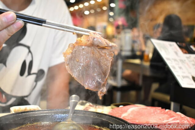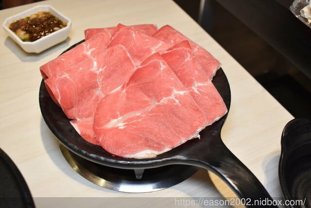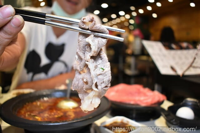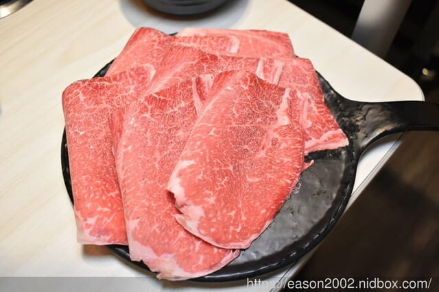 加入湯底後,就可以開始享受台式火鍋的風味了,除了提供10種不一樣的湯底供選擇,更提供7種不同肉品選擇,我們今天點了經典和牛以及板鍵牛,早上享受過牛五花了,晚上來點低脂肪的肉品吧~