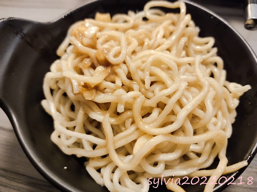 ↓煮好的老餓麵,醬料台上面有個天使麵和惡魔麵的沾醬作法,試了一下天使麵覺得還行。