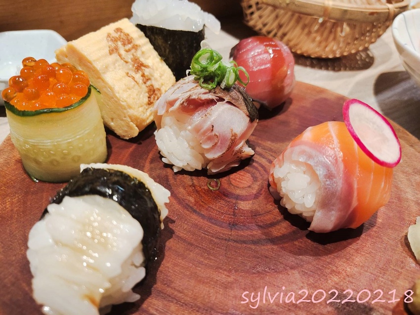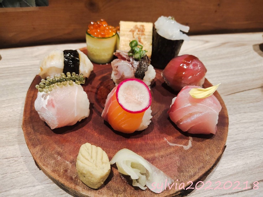 ↓毛毬壽司 $380八貫綜合(依照當日魚種配給)、玉子燒,人員建議從白肉魚>紅肉魚的順序吃過去。