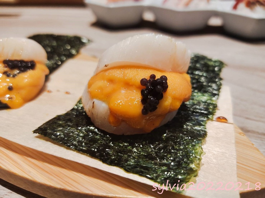 干貝、海膽、海苔,因為聽起來很厲害我就點了,但表現得確實還不錯,上面那一顆顆的是魚子醬。