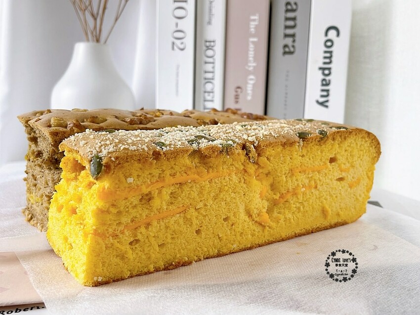 南瓜乳酪蛋糕,濃郁的南瓜香氣與乳酪夾層,整體香濃滋味,口感蓬鬆又有點綿密,小荻自己很喜歡南瓜乳酪蛋糕口味。
