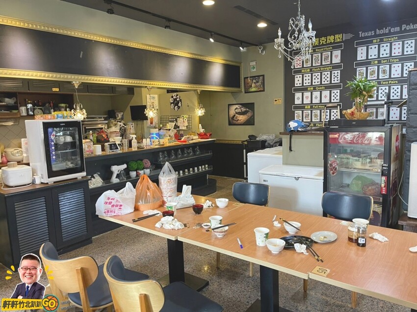 店內高掛著水晶吊燈,以黑色與金色作為主色調,整體裝潢是低調帶點奢華的風格