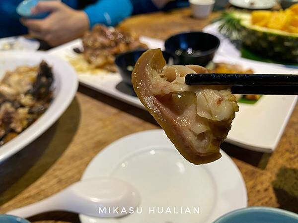 因為梅子雞會需要時間烹調,所以預定位置的時候人員會事先確認是否有需要先點梅子雞,我們是預先點了,到現在才點其他的菜色,所以梅子雞很快就上桌!梅子雞端出來超級香!烤梅子雞的味道跟我們在其他地方吃到的湯的梅子雞鍋完全不一樣,全雞外面的皮烤的很脆,幾乎只吃的到雞肉的鮮甜味,本身其實不會吃到很重的梅子味,只有一點提味、香香的感覺,雞肉肉質吃起來很嫩,沾醬味道會更重一些,真的超順口!