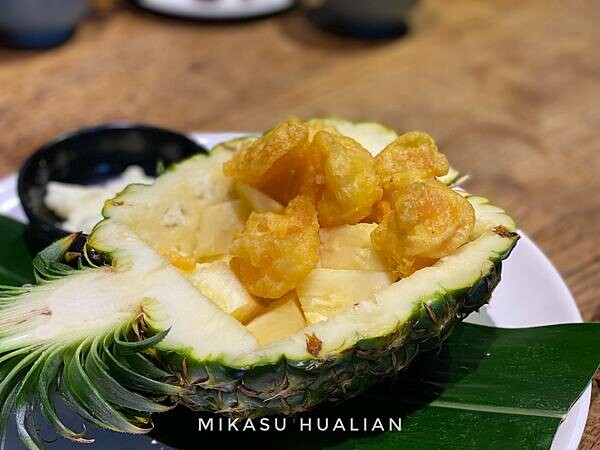 不知道為什麼這邊的鳳梨是白肉的,但感覺也是白肉的鳳梨比較適合入菜,我覺得口感上比較脆、甜度不會太高,單吃或是配蝦球都喜歡。