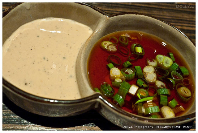 隨餐附上兩款沾醬:微酸的日式和風沾醬與胡麻醬,這都是桃桃非常喜歡的沾醬口味!尤其實胡麻醬超香的,沾什麼都好好吃~