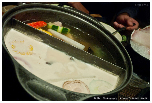 這裡的「柴魚昆布湯」非常清淡,可以嗅到淡淡的昆布味,應該是煮海鮮/蔬菜很安全的湯頭;而「日式白湯」則是豚骨湯加上牛奶與白味噌所熬製的湯頭,視覺上看起來很厚重,不過嚐起來卻意外的涮嘴!聞起來有淡淡的牛奶香,喝起來是會回甘的味噌口感,連向來對牛奶湯頭敬謝不敏的黑哥都覺得好好喝~