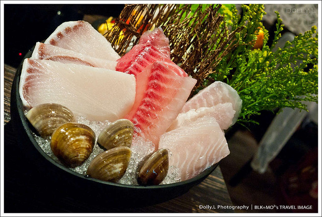 【鮮魚片套餐】的魚片盤有魴魚、鯛魚、旗魚和蛤蠣,蛤蠣雖個頭不算大但還蠻飽滿的;魚片類的表現則沒有特別驚艷……