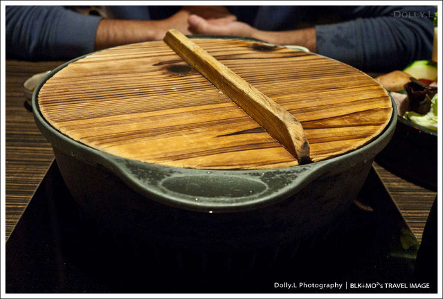 很大的鐵鍋盛著湯底,上頭還蓋有木質鍋蓋,又是充滿日味呀!視覺加分!