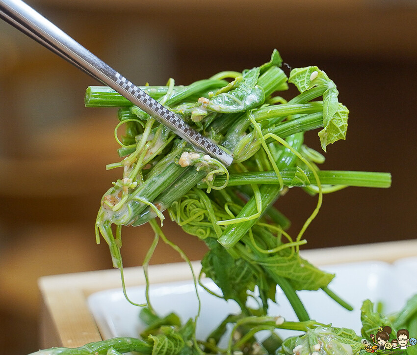涼拌龍鬚菜、涼拌煙燻耳絲、涼拌黃金泡菜