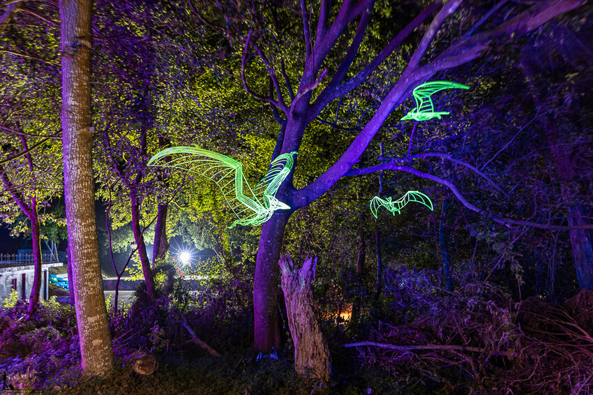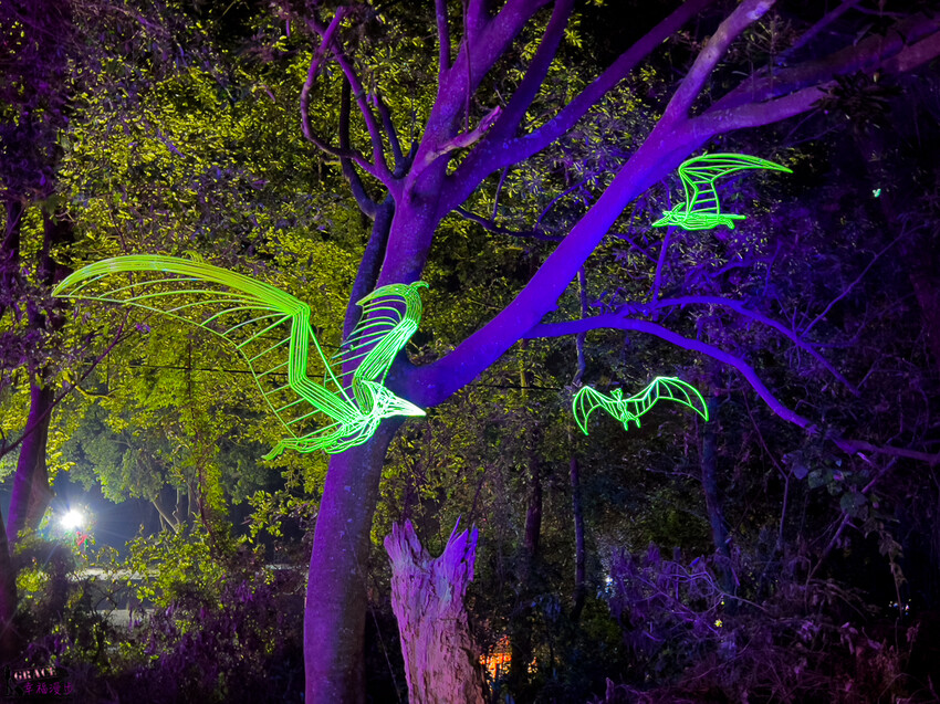 翼手龍次元,是採用夜光現行藝術打造出翼手龍的造型,透過幾何構成用點、線、面與光的結合,完成整個獨特造型,就如同翼手龍穿梭在樹林之間。