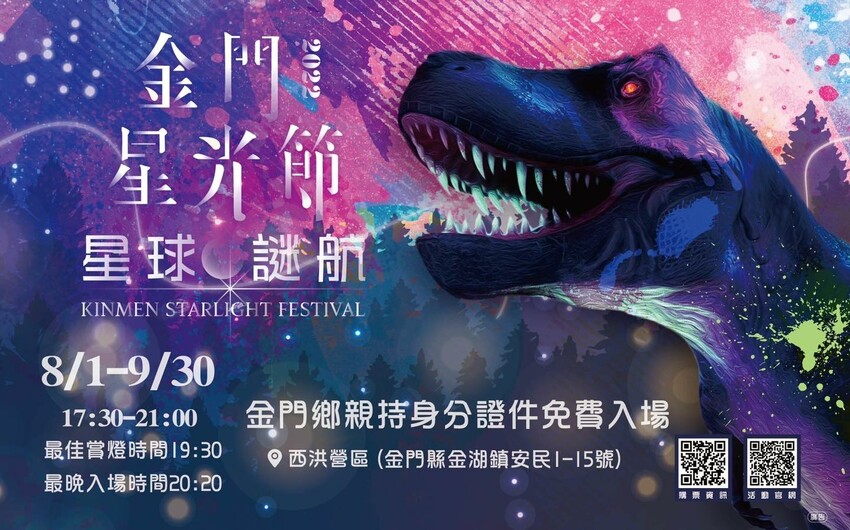 現在金門越來愈好玩了,上禮拜參加了金門夏日音樂季,緊接著2022金門星光節 也在8/1~9/30也登場了,這次獲邀先行踩點把資訊介紹給大家,金門星光節的位置是在金湖鎮的西洪營區,整個活動是結合燈光聲影、舞台劇場、主題活動等的燈光藝術展,還有大人小孩都愛的恐龍裝置喔!地圖導航🚗請按這裡