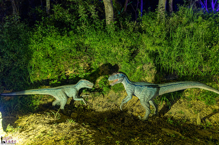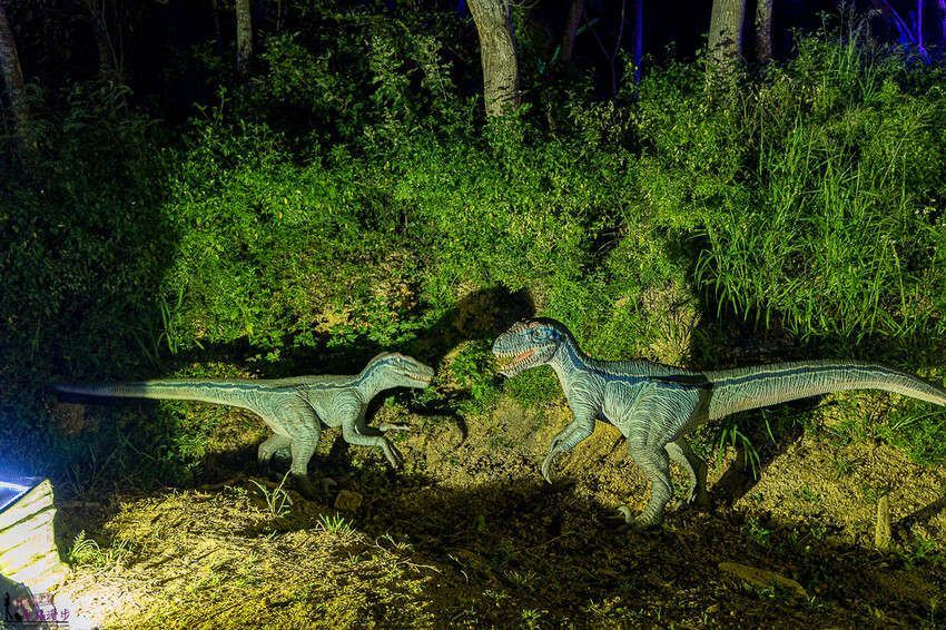 接下來到恐龍區,這是白堊紀迅猛龍,據說是很敏捷的盜賊,是屬於相當聰明的恐龍喔!這裡展出的恐龍都會搖動且會發出聲音。