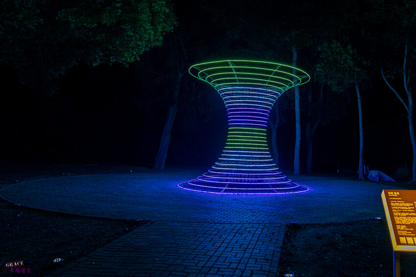 無限蟲洞,這個大型的裝置藝術代表著神秘宇宙黑洞,整體設計概念就是每趟旅途都會有一個轉折,在星際之旅中最神秘的就是蟲洞,蟲洞也是宇宙中最難解釋的現象,搭配著音樂聲真的很有神秘感。