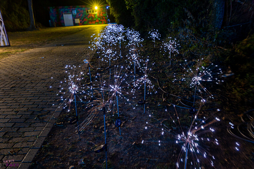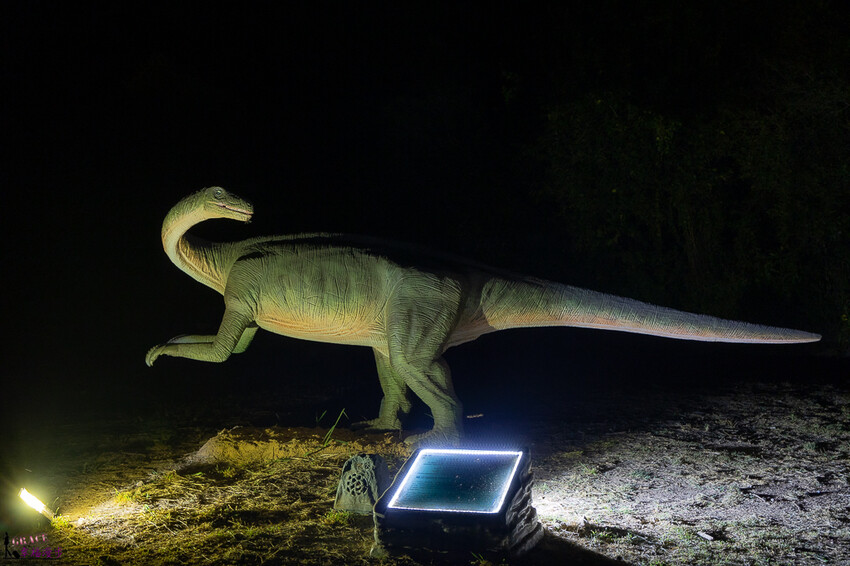 接著經過一整片的蒲公英燈海,延伸過去還有兩隻巨大恐龍正等著大家過去探險喔!