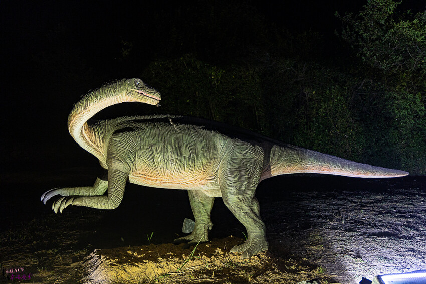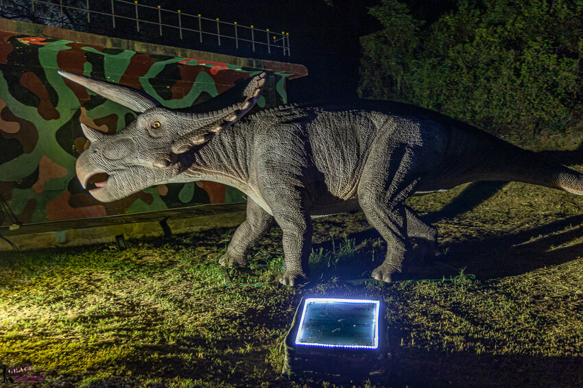 三角恐龍,這是遠古時空的恐龍,身高大約有300公分,搖頭晃尾的相當逼真。