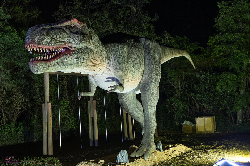 入口處的暴龍就已經讓大家哇哇大叫,這個暴龍是互動坐騎,來參觀的民眾可以集章後就可以拿到代幣去坐恐龍,不要以為只有單純的恐龍擺放,這隻暴龍會動還有吼聲喔!