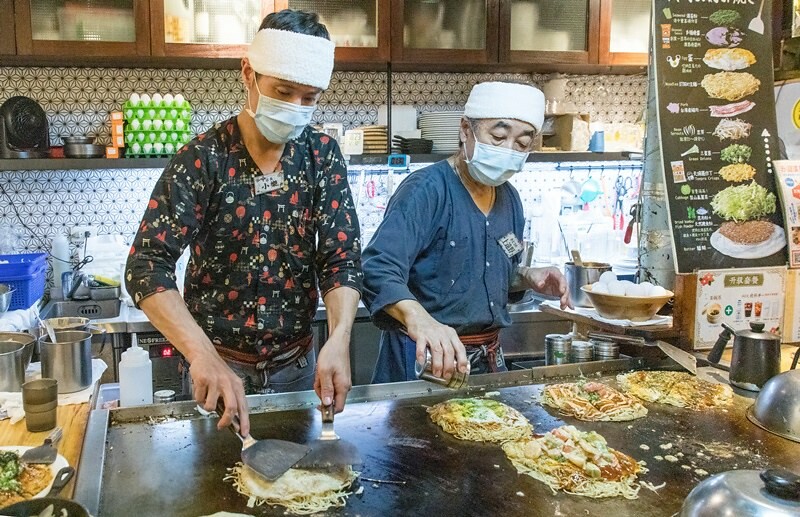 坐吧檯很有趣可以看著兩位師傅製作廣島燒,卻也會聞香到肚子咕咕叫。