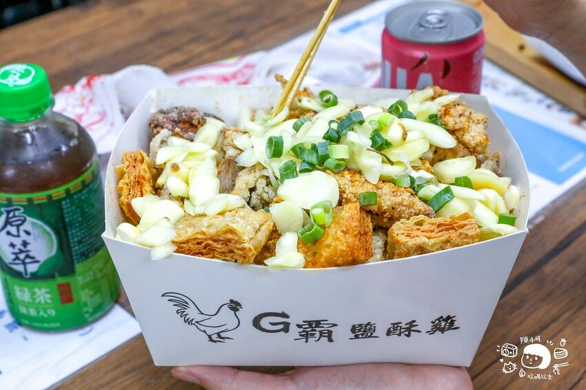 第一次知道G霸鹽酥雞(三重旗艦店)是在三重美食社團看到打卡推薦,讀者推薦超大G排好吃,還有滿滿的蒜片重口味療癒,外帶份量多也會使用盒裝,現場還有兩張桌椅可以內用直接吃,三重宵夜好去處~