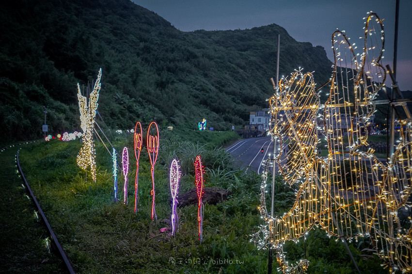 回程我花了25分鐘慢慢的欣賞了深澳鐵路自行車夜間限定的各種裝置,真的覺得非常值得且又可以了解到舊時鐵道故事,騎回八斗子站後,現場也都點起各種燈光設計,八斗子晚上這一帶其實蠻暗的,所以我覺得八斗子站這裡很像那種在靛藍的海洋裡突然會看到發光的魚群般,很奇妙的感覺,深澳鐵道自行車到9月底前,都有夜間限定鐵道自行車,把握時間前來一趟啊~