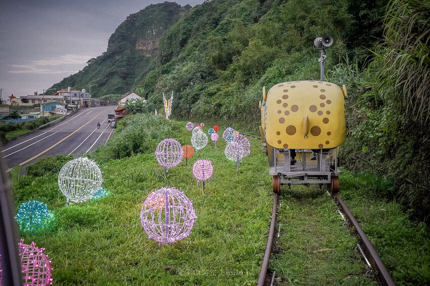 不管是從八斗子站騎到深澳站或著從深澳站騎回八斗子站,都會欣賞到沿岸的景色,但真的太熱了啦,我騎到噴汗,根本就是在運動,只是風景很美,哈哈哈,然後官網上說,單趟約莫30分鐘,但若是腳程快且沒有認真欣賞風的人,大約10來分就會騎完單趟,另一種就是因為河豚車都是採人工自己踩踏,大家難免會跟著前方的車騎,發現自己落後一大段就會加速,像我第一次騎,僅花15分鐘,因為剛好這班次的人都騎超快,我後來發現其實再怎麼慢,大約25分鐘會結束單程,還是建議大家以自己舒服的騎乘方式,然後好好欣賞團美景與燈光裝置。