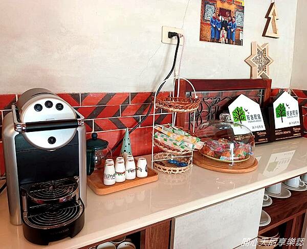 我和閨蜜參觀完房間後,立馬拿著免費提供的膠囊咖啡、點心,坐下來休息一下,享受在台北難得悠閒的美好時光,再出發去金城鎮逛逛~
