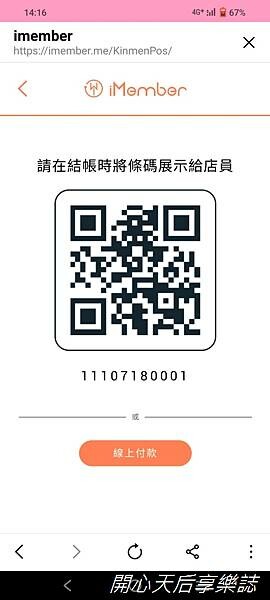這次來金門旅遊,才知道有個很棒的「金門贈點好玩IPOINTS 官方line@」,透過IPOINTS線上查詢預訂旅宿、租車、購物、美食、活動體驗或是線上購買零食商品都可以累積點數,點數等同於現金,可以換購金門名產,運送到台灣,不用提著大包小包回台灣,很方便,另外在金門當地的合作商家消費時,點數也能享折抵優惠,不但下次消費能折抵,還能轉贈給朋友使用,很讚喔!