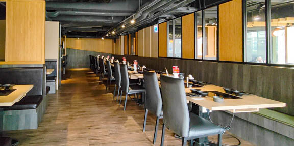 裝潢帶有日式火鍋店的風格
